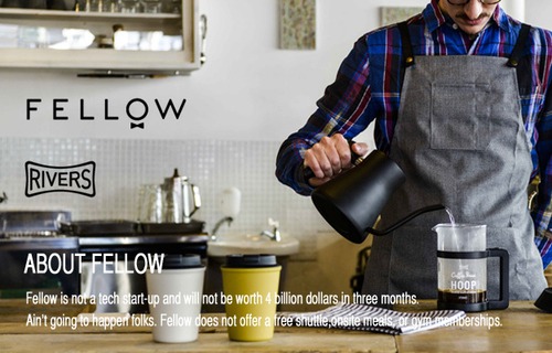 サンフランシスコ発のコーヒープロダクトを専門にデザインと機能性に優れた製品を発表している新進気鋭のFELLOW(フェロー)社。「ドリンク」をテーマに、新しい製品を生み出すRIVERS(リバーズ)が日本の総代理店を務めており、高いデザイン品質と機能的なアイデアは様々な業界から高く評価されるとともに、 数多くのブランド企業とコラボレーションするなど、新しい製品を多方面で発表し続けています